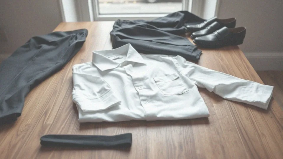 Kluczowym elementem dla obu płci jest biała koszula lub elegancka bluzka, zapewniająca klasyczny wygląd. Dopełnieniem stroju stanowią: